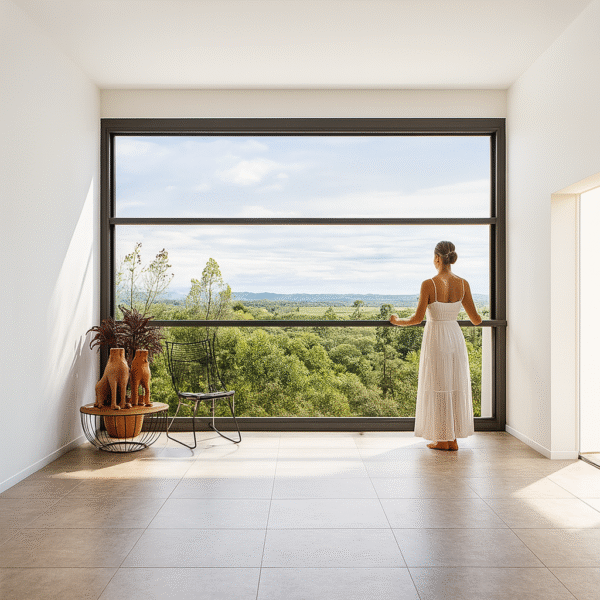 Su diseño funcional sin barreras visuales garantiza la máxima entrada de luz natural, con perfiles mínimos y posibilidad de múltiples hojas. Compatible con domótica, esta ventana permite automatización completa mediante interruptores o dispositivos inteligentes.